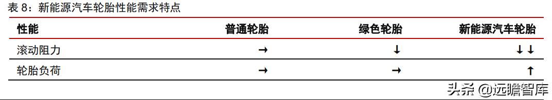 首先,由于附加电池组后电动车的重量较同尺寸的燃油车更重,因此电动车轮胎必须采用加固结构以承受额外重量;其次,为了降低能量损耗,电动车轮胎需具备相对较小的滚动阻力;同时为了保证行驶安全,轮胎的抗湿滑性、耐磨性也不能受损。