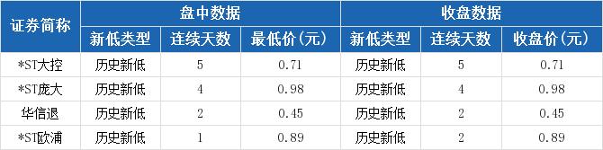 从全市场来看,9月17日沪深两市中,共有*ST庞大、*ST大控、*ST欧浦等4只个股盘中价创历史新低。