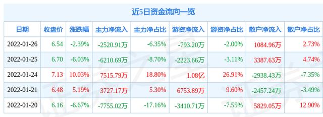 资金流向数据方面,上个交易日主力资金净流出2520.91万元,游资资金净流出793.2万元,散户资金净流入1084.96万元。近5日资金流向一览见下表: