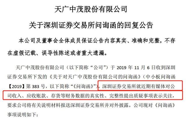 每日经济新闻的调查报道发出后,深交所引用报道的主要内容,对天广中茂进行了问询。