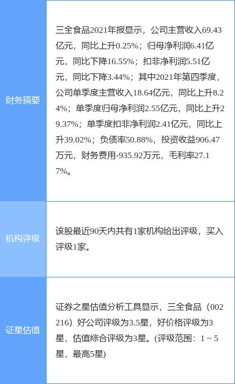 三全食品(002216)个股概况: