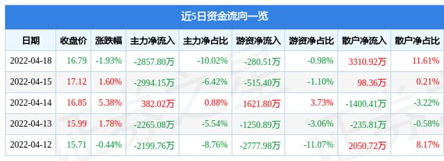 资金流向数据方面,上个交易日主力资金净流出2857.8万元,游资资金净流出280.51万元,散户资金净流入3310.92万元。近5日资金流向一览见下表:
