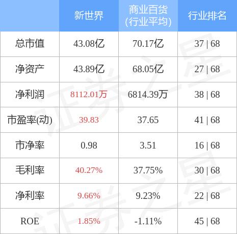 新世界主要指标及行业内排名如下: