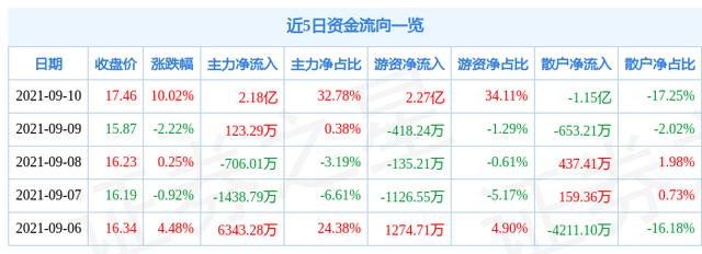 资金流向数据方面,当日主力资金净流入2.18亿元,游资资金净流入2.27亿元,散户资金净流出1.15亿元。近5日资金流向一览见下表: