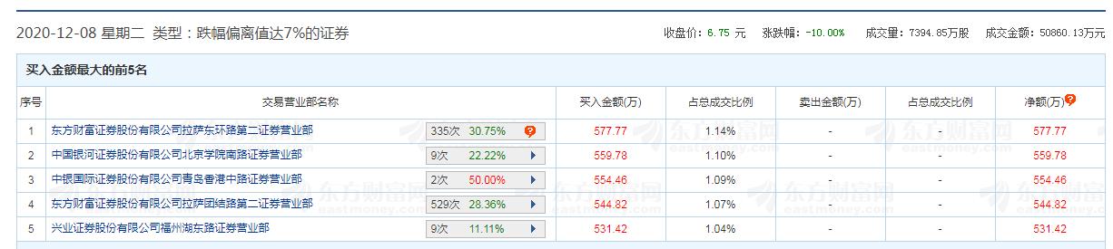 8日龙虎榜数据: