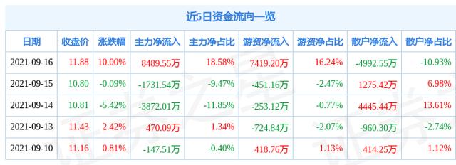 资金流向数据方面,当日主力资金净流入8489.55万元,游资资金净流入7419.2万元,散户资金净流出4992.55万元。近5日资金流向一览见下表: