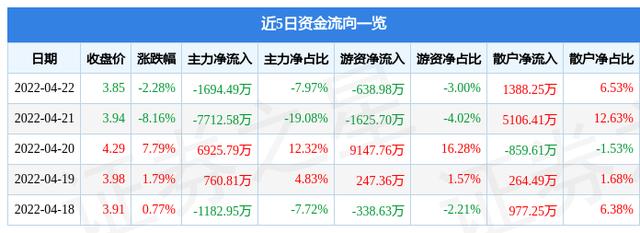 资金流向数据方面,上个交易日主力资金净流出1694.49万元,游资资金净流出638.98万元,散户资金净流入1388.25万元。