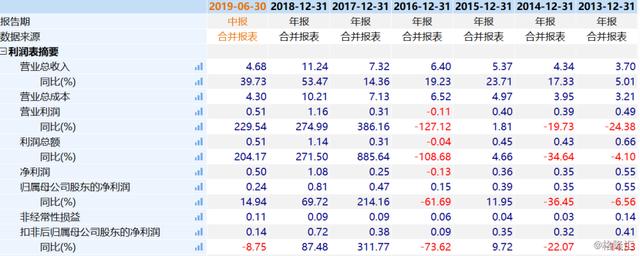 据财报显示,2018年,该公司实现营业收入11.24亿元,同比增长53.47%,实现归属净利润为0.81亿元,同比增长69.72%,实现扣非净利润为0.72亿元,同比增长87.48%。相较于前几年不断下滑的业绩可谓是有了质的提升。