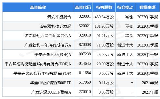 其中持有数量最多的基金为诺安平衡混合,目前规模为12.68亿元,最新净值1.0493(4月27日),较上一交易日上涨1.54%,近一年下跌13.32%。该基金现任基金经理为曲泉儒。