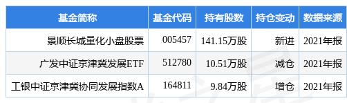 根据2021年报基金重仓股数据,重仓该股的基金共3家,其中持有数量最多的基金为景顺长城量化小盘股票。景顺长城量化小盘股票目前规模为7.01亿元,最新净值1.6339(3月22日),较上一日下跌0.23%,近一年上涨12.34%。该基金现任基金经理为黎海威。黎海威在任的公募基金包括:景顺长城沪深300指数增强,管理时间为2013年10月29日至今,期间收益率为178.69%;景顺长城量化精选股票,管理时间为2015年2月4日至今,期间收益率为85.43%;景顺长城量化新动力股票,管理时间为2016年7月13日至今,期间收益率为114.4%;景顺长城量化平衡混合,管理时间为2017年12月27日至今,期间收益率为40.58%。