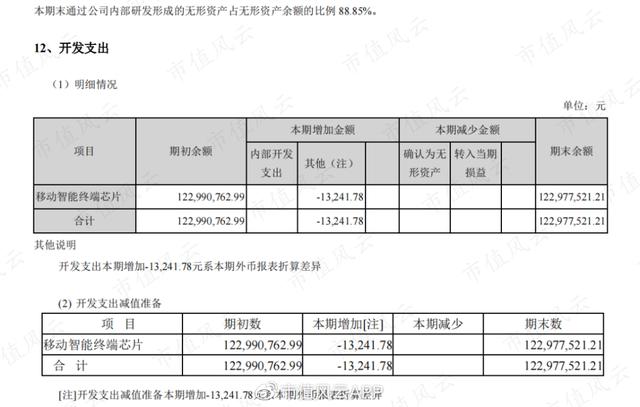 其中与主营业务有关的移动智能终端芯片研发项目的开发支出1.23亿全部计提减值准备。
