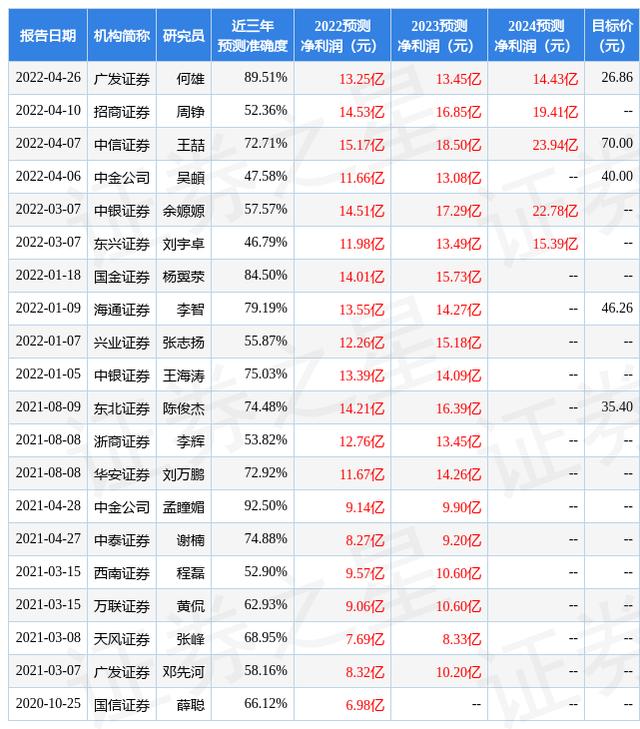 证券之星数据中心根据近三年发布的研报数据计算,中金公司孟瞳媚研究员团队对该股研究较为深入,近三年预测准确度均值高达92.5%,其预测2022年度归属净利润为盈利9.14亿,根据现价换算的预测PE为11.91。
