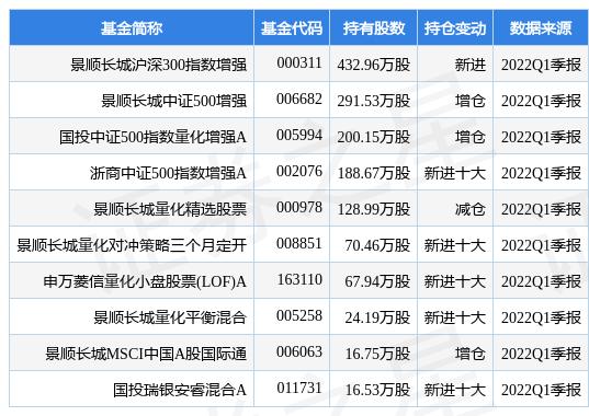 其中持有数量最多的基金为景顺长城沪深300指数增强,目前规模为46.85亿元,最新净值2.193(4月27日),较上一交易日上涨2.62%,近一年下跌23.51%。该基金现任基金经理为黎海威。