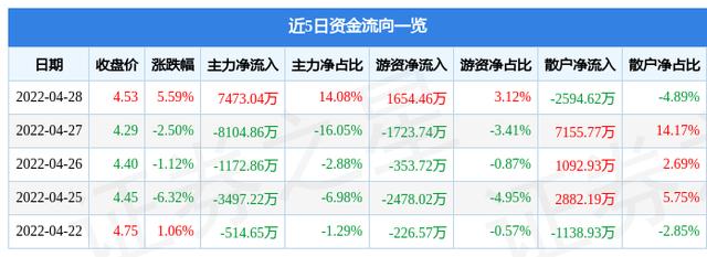 资金流向数据方面,4月28日主力资金净流入7473.04万元,游资资金净流入1654.46万元,散户资金净流出2594.62万元。