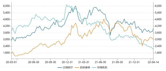图:迈瑞医疗、恒瑞医药、药明康德市值变动轨迹