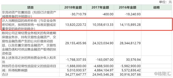 例如,该公司在2016年至2018年期间分别获得了政府补助1411.59万元、1035.86万元、1382.02万元。