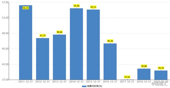 销售毛利率方面,该公司的这一指标在2017年创下了上市以来的新低,仅为37.01%。此后,这一指标虽然有所好转但是相较于上市之初仍有非常大的差距。