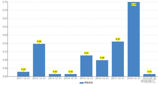 另外,2016年至2019年9月30日,该公司的研发支出分别为0.49亿元、0.57亿元、0.74亿元、0.43亿元,研发投入在当期营收中的占比分别为43.75%、30.98%、28.46%、17.84%。