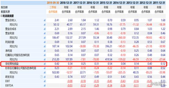 实际上,归母净利润并没有反映出该公司真实的盈利能力,其扣非后归属母公司股东的净利润自2014年开始持续5年为负值,直到今年前三季度这一情况方才好转,达到了0.23亿元。