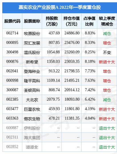 原文标题:隆平高科跌7.33%,嘉实农业产业股票A基金2022Q1季报重仓该股