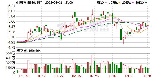 2022年3月31日,沪股通持有中国石油的股份数量为9.95亿股,占A股流通股本的0.61%,较上期(2022年2月28日)的8.11亿股上升22.69%。