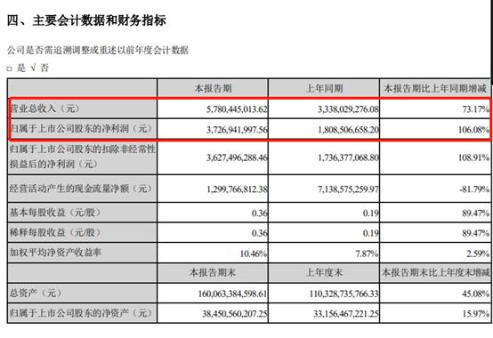 财联社(深圳,记者 邹晨辉)讯,7月23日,东方财富发布2021年半年度报告。报告期内公司实现营收57.80亿元,同比增长73.17%;实现归母净利37.27亿元,同比增长106.08%。