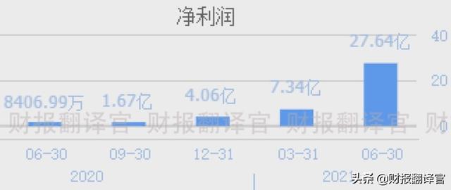 2020年第二季度,该公司的净利润只有8407万元。到了2021年第二季度,净利润达到了27.64亿元,同比增长了3188%。