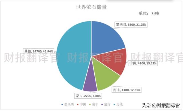 2020年底世界萤石总储量为3.2亿吨氟化钙,主要分布在墨西哥、中国、南非、蒙古等,而美国、欧盟、日本、韩国和印度几乎少有萤石资源储量,形成结构性稀缺。