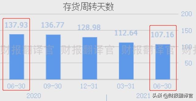 2020年第二季度,公司销售一批存货,需要138天的时间。现在只需要107天,销售速度提高了22%。