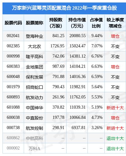 万家新兴蓝筹灵活配置混合的前十大重仓股如下: