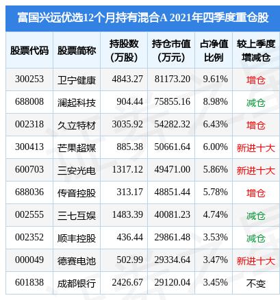 富国兴远优选12个月持有混合A的前十大重仓股如下: