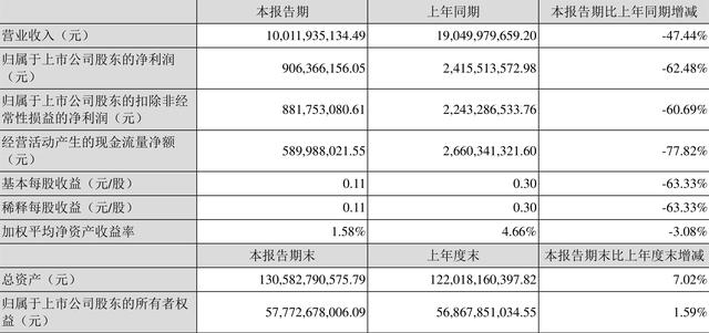 2022年一季度,公司加权平均净资产收益率为1.58%,同比下降3.08个百分点,环比增长0.45个百分点。