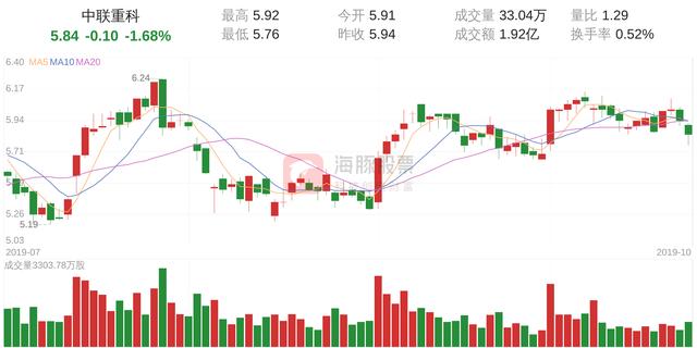 中联重科今日下跌1.68%,股价为5.84元,成交金额为1.92亿元,成交33万手,换手率为0.52%。