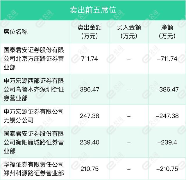 卖出前五席位总计卖出1795.74万元,占当日总成交额20.82%。