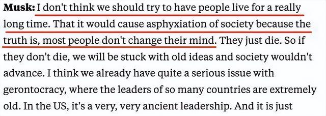 【马斯克:大部分人没必要活那么长】在最近的一次采访中,马斯克谈到特斯拉推出的人形机器人擎天柱(Optimus)时表示:总有一天,我们可以将那些独一无二的东西,比如性格、记忆下载到机器人身体中,这将是一种不同的永生方式。不过马斯克对研究肉体层面的长寿却不感兴趣,他认为,如果人类存活太长时间,会让社会“陷入窒息”。现阶段,他三个“最大恐惧”是人类与日俱减的出生率、人工智能危机、宗教极端主义,而最紧迫想要完成的项目是全自动驾驶。(量子位)