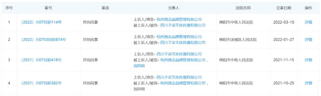 【杭州微念再次起诉李子柒公司】近日,杭州微念品牌管理有限公司与四川子柒文化传播有限公司再新增一则立案信息。立案日期为3月10日,原告为杭州微念,被告为子柒文化,经办法院为四川省绵阳市中级人民法院。2021年10月,李子柒与杭州微念产生分歧的消息曾引发外界强烈关注。(红星资本局)