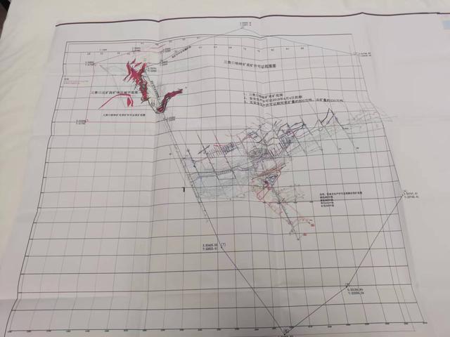 三贵口矿采矿许可证范围,红色部分为超出采矿许可证范围的北矿段
