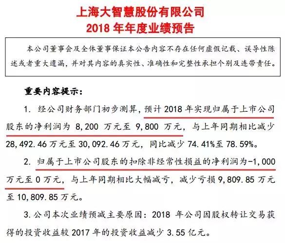 在此之前,大智慧披露了2018年业绩预减公告,预计2018年归属于上市公司股东的净利润为8200万元至9800万元,较上年同比减少74.41%至78.59%;扣非净利润为-1000万元至0万元,与上年同期相比大幅减亏。