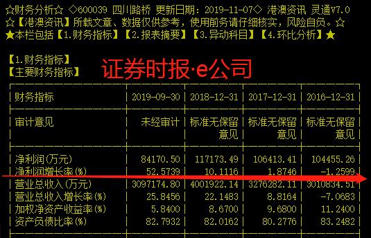 从业绩层面来看,2019年前三季度,四川路桥完成营业收入309.72亿元,同比增长25.85%;实现净利润8.42亿元,同比增长52.57%。证券时报·e公司记者了解到,四川路桥及下属公司2019年12月中标工程施工项目48个,中标合同金额约323.18亿元。截至2019年12月31日,四川路桥2019年度累计中标工程施工项目174个,累计中标金额约545.53亿元。