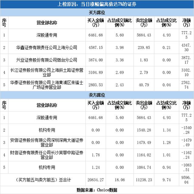 今日龙虎榜单上出现了深股通的身影,占据了买一、卖一的位置,净买入777.25万元,占当日成交总额的0.67%。除此之外深股通还参与到了四维图新、劲嘉股份、德赛电池等6只个股中,其中4家呈现深股通净买入,获净买入最多的是四维图新,净买额为1.29亿元;2家呈现深股通净卖出,遭净卖出最高的为德赛电池,净卖额为5080.55万元。