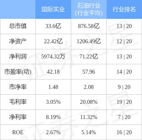 国际实业主要指标及行业内排名如下:
