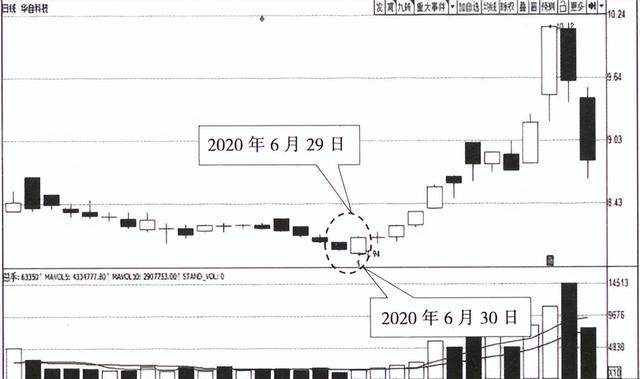 华自科技在经历了一波下跌行情之后,于2020年6月29日和30日这两天出现了看涨吞没形态。