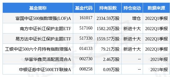 根据2022Q1季报基金重仓股数据,重仓该股的基金共4家,其中持有数量最多的基金为富国中证500指数增强(LOF)A。富国中证500指数增强(LOF)A目前规模为75.45亿元,最新净值2.139(4月22日),较上一日下跌0.09%,近一年下跌5.77%。该基金现任基金经理为李笑薇 徐幼华 方旻。李笑薇在任的公募基金包括:富国沪深300指数增强A,管理时间为2009年12月23日至今,期间收益率为117.15%;徐幼华在任的公募基金包括:富国中证红利指数增强A,管理时间为2011年5月13日至今,期间收益率为144.45%;富国港股通量化精选股票A,管理时间为2018年5月30日至今,期间收益率为-18.33%;富国中证1000指数增强(LOF)A,管理时间为2018年5月31日至今,期间收益率为68.05%。方旻在任的公募基金包括:富国中证红利指数增强A,管理时间为2014年11月19日至今,期间收益率为149.02%;富国沪深300指数增强A,管理时间为2014年11月19日至今,期间收益率为138.49%;上证综指ETF,管理时间为2014年11月19日至今,期间收益率为66.17%。
