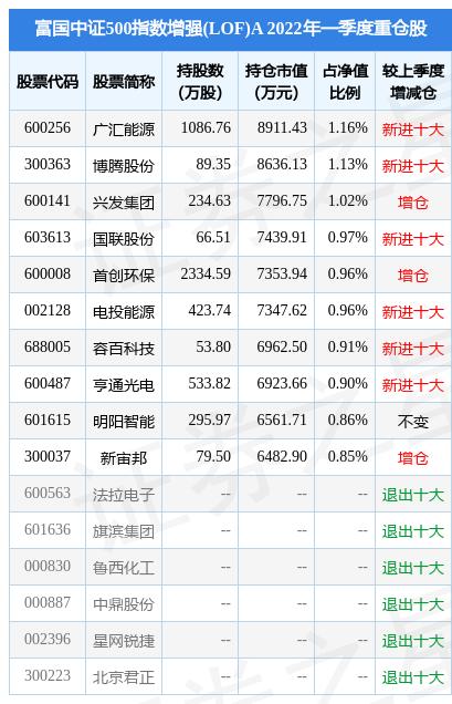 富国中证500指数增强(LOF)A的前十大重仓股如下: