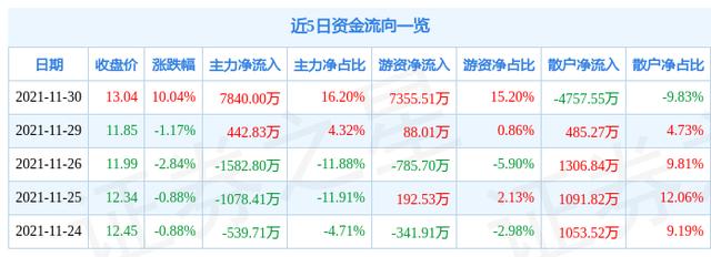 资金流向数据方面,当日主力资金净流入7840.0万元,游资资金净流入7355.51万元,散户资金净流出4757.55万元。近5日资金流向一览见下表: