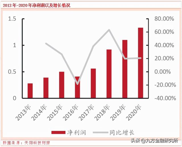 2013年以来,天阳科技综合毛利率始终保持在35%以上,净利率则维持在10%以上。