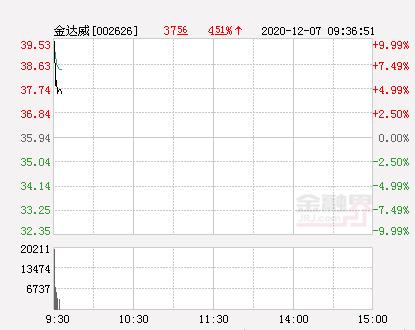 金融界网站12月7日讯 今日金达威开盘报39.53元,截止09:30分,该股涨9.99%报39.53元,封上涨停板。