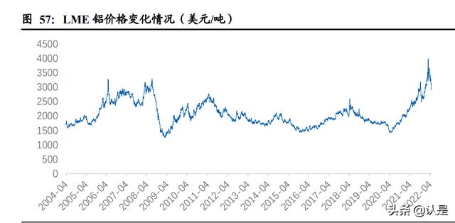 电解铝碳减排压力大,产能天花板防无序扩张。电解铝属于典型高耗能行业,电力 费用在电解铝成本中约占 1/3,2020 年,全国电解铝生产用电量 5022 亿千瓦时,占 全国总用电量的 6.7%。我国铝产业链的碳排放量约为 5.6 亿吨,约占国内二氧化碳 排放量的 6%,其中电解铝环节碳排放量为 4.2 亿吨,占铝行业碳排放的 75%。为解 决产能过剩与高碳排放问题,供给侧结构性改革要求电解铝产能不能超过 4500 万 吨红线,新增产能严格受限,落后产能不断被淘汰。2022 年 2 月 10 日,工信部等 八部委印发“关于印发加快推动工业资源综合利用实施方案”的通知,再次明确严 控新增钢铁、电解铝等相关行业产能规模。随着我国电解铝产能逐步接近天花板, 落后产能不断出清,行业供需结构明显改善,铝价持续上涨,2021 年电解铝企业盈 利能力普遍大幅提升。
