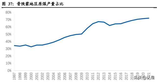 低效产能快速退出,行业集中度提升。我国煤炭行业长期处于“多、小、散”的局 面,小型煤炭生产企业众多,具有一定规模的煤炭生产企业数量比较少。2016 年, 国务院印发了《关于煤炭行业化解过剩产能实现脱困发展的意见》,提出从 2016 年 开始,用 3 至 5 年的时间,再退出产能 5 亿吨左右、减量重组 5 亿吨左右。5 年来, 全国煤矿数量由 2016 年初的 1.2 万多处减少到 4500 处以内,其中年产 120 万吨以 上的大型煤矿产量占全国 85%左右,1200 多个现代化大型煤矿占总产能的 80%,内 蒙古、山西、陕西、新疆占全国煤炭产能的 79.9%,年产 30 万吨以下小型煤矿产能 占全国比重下降至 2%左右,行业集中度得到大幅提升。此外随着瓦日、浩吉等一批 煤炭铁路干线投入运营,全国铁路运输瓶颈制约基本缓解。据《煤炭工业“十四五” 高质量发展指导意见》显示,到“十四五”末,国内煤炭产量控制在 41 亿吨左右, 全国煤炭消费量控制在 42 亿吨左右,年均消费增长 1%左右。全国煤矿数量控制在 4000 处以内,建成煤矿智能化采掘工作面 1000 处以上,建成千万吨级矿井(露天) 数量 65 处、产能超过 10 亿吨/年,培育 3-5 家具有全球竞争力的世界一流煤炭企业。