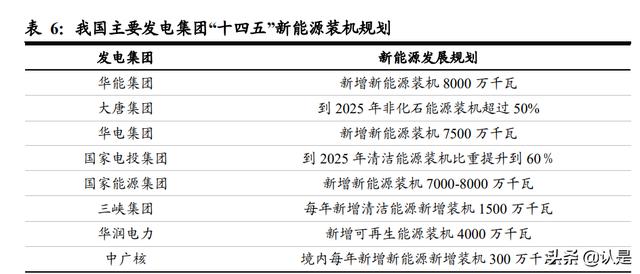 央企、大基地项目兜底,新能源发展确定性高。为确保如期达成“双碳”目标,国家 积极推进发展新能源,组织实施了风光大基地、整县推进光伏等多个国家级项目, 并对分散式风电、老旧风场改造项目公开征求意见。2021 年 12 月,国务院国资委 发布《关于推进中央企业高质量发展做好碳达峰碳中和工作的指导意见》,提出加 快构建以新能源为主体的新型电力系统,到 2025 年可再生能源发电装机比重达到 50%以上。在政策的支持下,我国以五大四小电力集团为代表的电力央企积极推进 发展新能源,“十四五”均提及改善装机结构,国家和央企的新能源规划有效的保障 了我国新能源装机量及装机增速,进一步提高了我国新能源发展的确定性。(报告来源:未来智库)